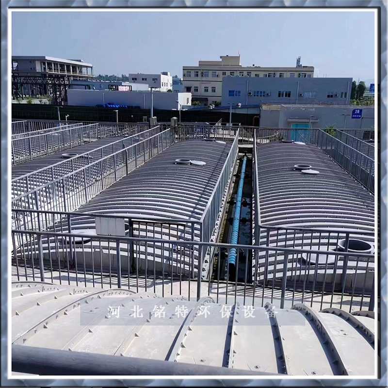 7、蓋板的兩(liǎng)側設置有向內的(de)導流板,高(gāo)濕蒸發水份沿(yán)棚(péng)蓋流入兩側的導流板後(hòu),經過表麵的導流槽(cáo),再(zài)次流入汙水池內,防止侵漬腐蝕池壁(bì)混凝土(tǔ)結構。